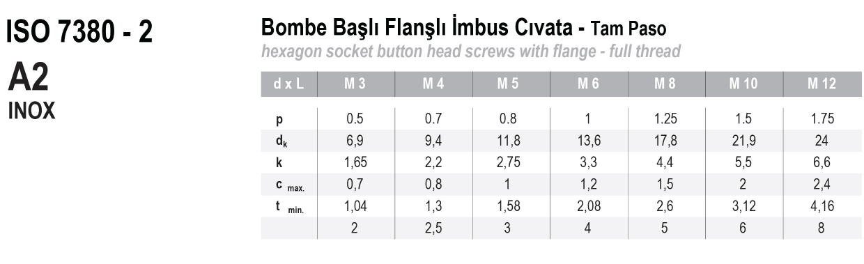ISO 7380 Bombe Başlı İmbus Cıvata – Tam Paso